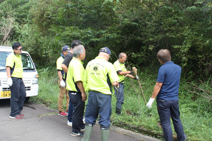 | ≪参加者≫ 会長 L古屋善規、幹事 L杉山 弦 保健委員長 L瀬口廣明、L小林 哲 L川久保好巳、L土井康男、L三木崇 L村松清隆、L植松貞治、L青木正治 L若林 厚。11名が参加致しました L若林が高圧洗浄機でコケなどの除去清掃を行って下さいました。 |